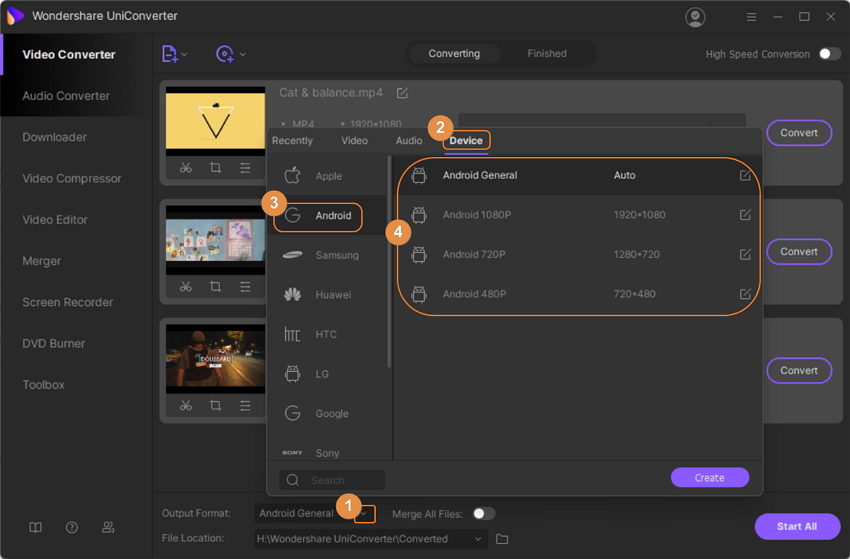 Online UniConverter enables you to convert any video to Android format online and free.