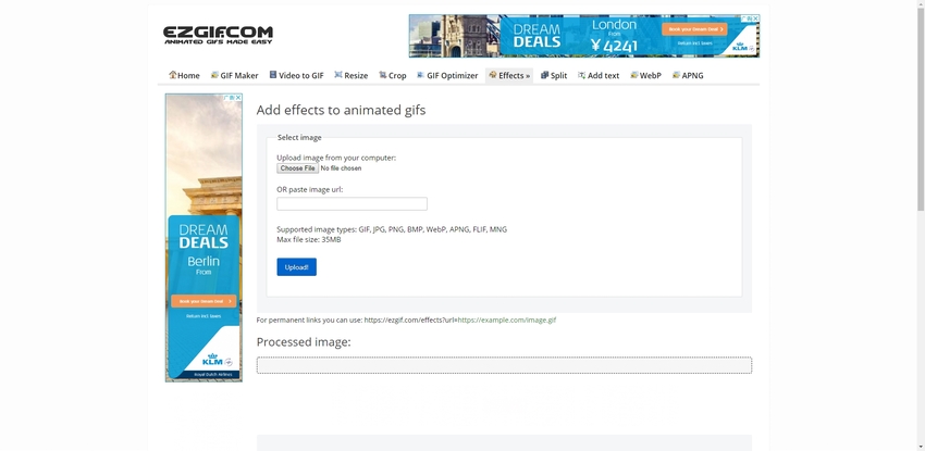 EZGIF contains impressive features that can help people to create an incredible and funny GIF. By allowing the user to add lots of features to improve the user create funny GIF. With EZGIF, user can add a filter to GIF, change colors of an image, and replace the color with transparency. Also, people could reverse, rotate, and transform GIFs. All user needs to do is in three simple steps to customize your GIF. For example, upload your GIF or paste URL (maximum size permitted is 35MB), add effects, and your GIF process according to your selected result.