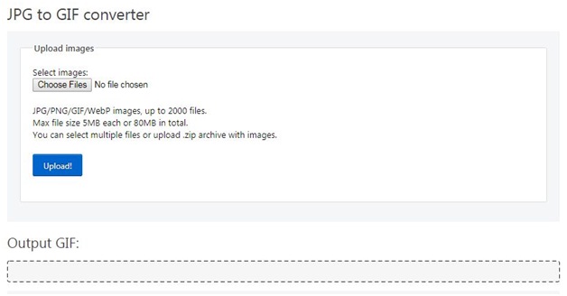 The layout of ezgif.com is very simple to understand thus you can easily convert images to animated JPG. You get to upload a total of 2000 different image files at a single time. The size of single image file should not exceed beyond 5 MB while you can upload a total of 80 MB files. This online conversion site also offers you a chance to upload .Zip archive along with images; this facility will save much of your precious time during conversion process. The site is SSL secured and it also follows strict confidentiality norms, thus you don’t have to fret about a thing while uploading your image file.