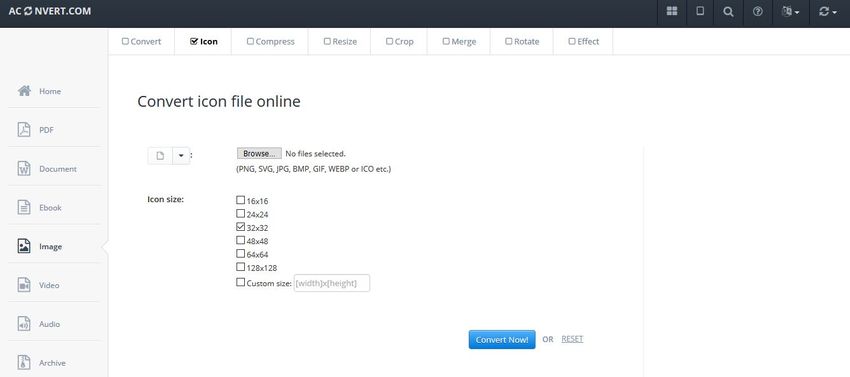 AConvert is also an online service that quickly converts the images from BMP to ICO format using the internet and your browser. You can access this website in mainly any popular browser, but there is one issue that you can only convert files one by one because the online site doesn’t allow you to convert the files in batch. This website enables you to do necessary changes to your images as well so you can compress, edit, resize, rotate or add special effects to the pictures as well.