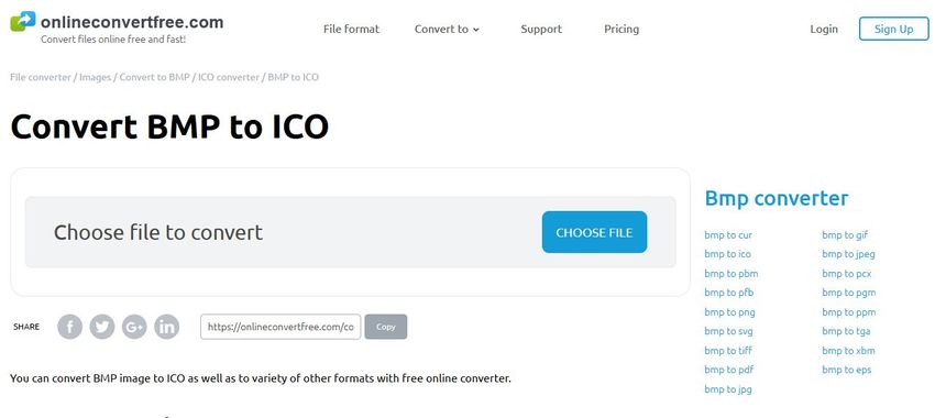 Online Convert free is also a BMP to ICO converter online web application where you can simply convert the images in the needed formats of your choice. With the images it also supports audio, books, archive, document and video conversion. The website works in the browser so there is not any issue of downloading the software on computer to convert BMP to ICO.