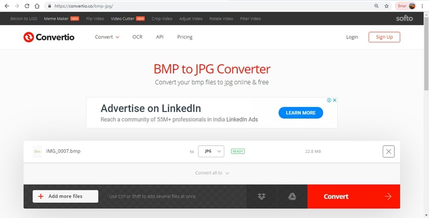 One of the famous online BMP to JPG converter, which is called Online UniConverter. Easy steps to convert a good quality JPG image. Unlimited upload files after sign up free and one-click to convert all BMP files to JPG without trouble.