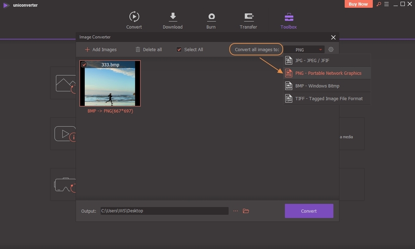 Conversion Steps-Convert BMP to PNG in UniConverter