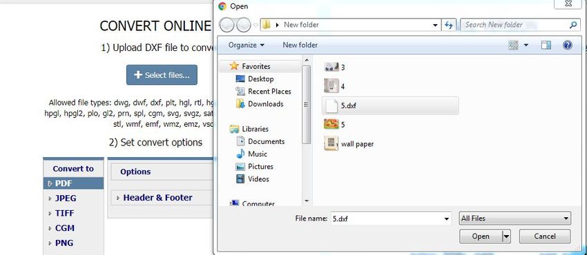 Step 1: During the primary step of DXF to JPG conversion, you just have to pick the file of your interest from various platform sources and have to upload it on the online converter.