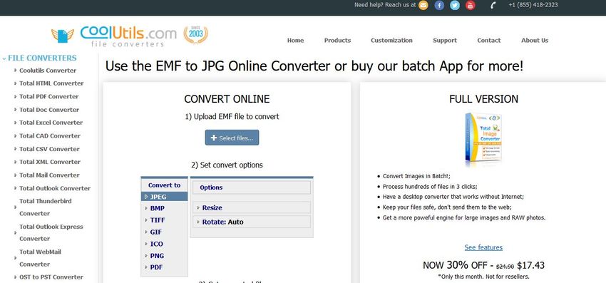 CoolUtils is another online EMF to JPG converter website that can quickly convert the files without any installation on the computer. This is an online website so there is no need to worry about the compatibility of the operating system and you can easily use it on any operating system computer or laptop.