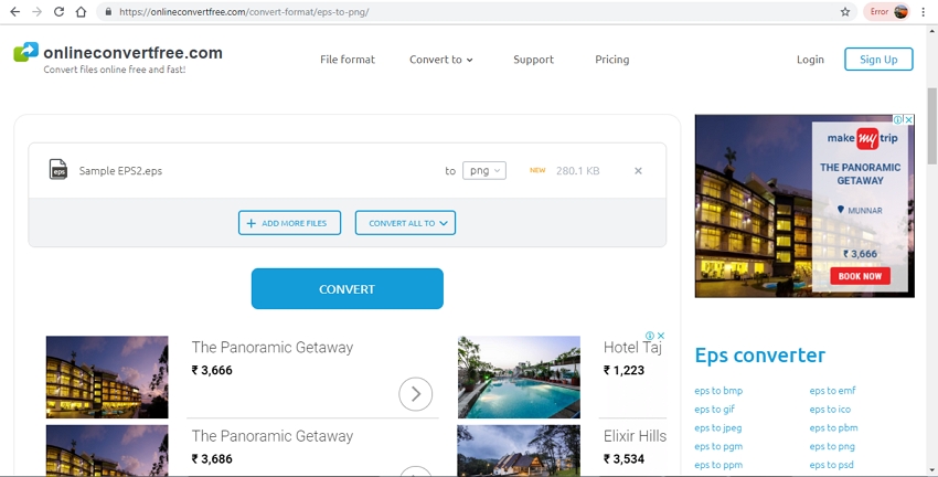 Using Zamzar, you can convert EPS to PNG in a hassle-free manner. Files on the computer and the link can be added to the interface for the conversion process. In addition to PNG, several other image formats are also supported by the tool. Work straight from your browser and post-conversion download the file to your system or receive it on your mail.
