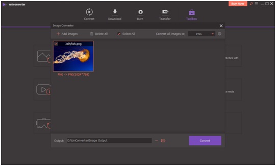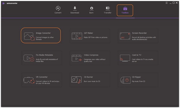 You can download the Free Trial version from their official website and install it subsequently. Once it’s installed successfully, launch it and switch to the Toolbox Panel. Click on the first option, Image Converter to use the flip PNG image feature.