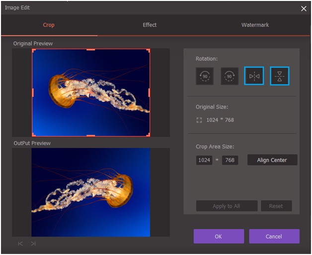 - It can Crop, Rotate, Flip, Add Watermark, and Adjust Effects to the PNG image.