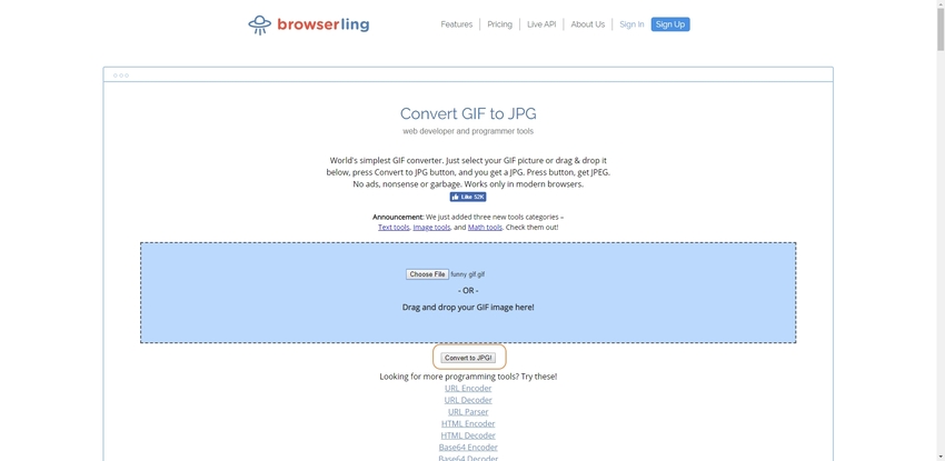 Browserling is another free online GIF tool, which is mostly referred to as the most straightforward tool to convert GIF to pictures. It avails user with lots of other features that may be useful, e.g., password tool, encryption tool, image tool, web tools, amongst many others. What’s the more exciting thing is all these are free to use. The website is designed for user’s utmost convenience and interaction, hence its multiple features on the site. The online tool is void of ads and any annoying pop-ups. However, it works only with modern browsers.