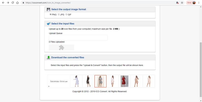 This is free to use an online conversion program that allows converting your ICO files to PNG file in just a few simple steps. The program needs no software download or installation and works from the browser window.