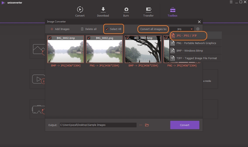 Steps to Convert Images to JPEG Pictures using Wondershare UniConverter