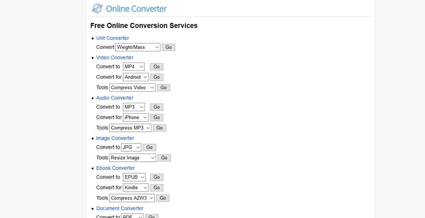 Online Converter website is another good option for you that enable users to convert the audio, video and other files in different formats including the photos. You can convert the images in any format of your choice with ease without doing any effort. This website supports mainly all types of files conversions such as EBook, archive, device, web service, hash, etc.