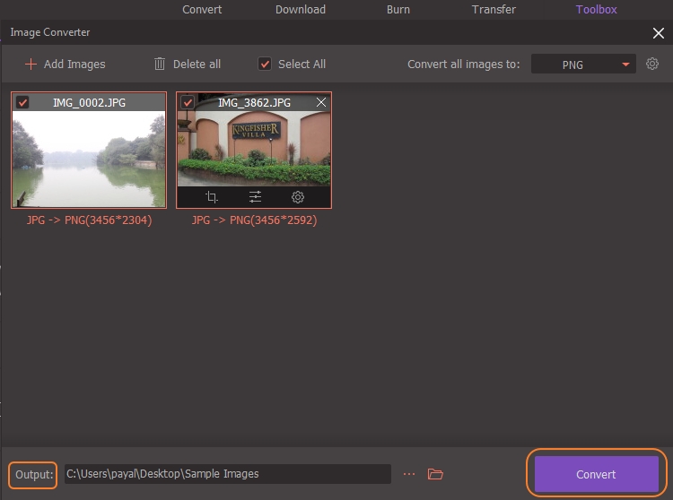 At the File Locationsection desktop location to save the processed files can be selected. Finally, hit on the Convert button to start converting the added images to PNG format.