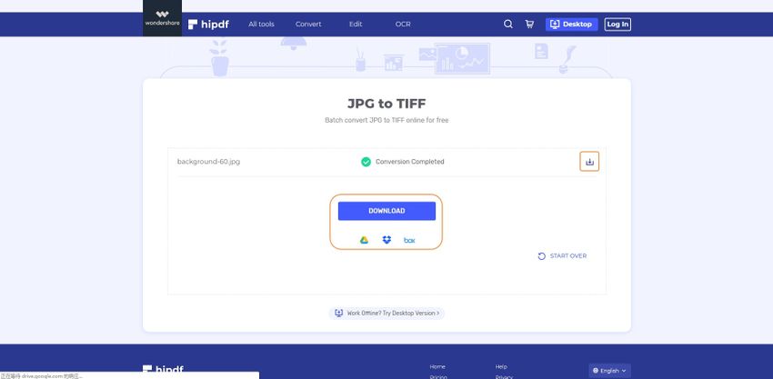 Step 3. After conversion complete, you could either download the TIFF file directly, Google Drive, or other ways.