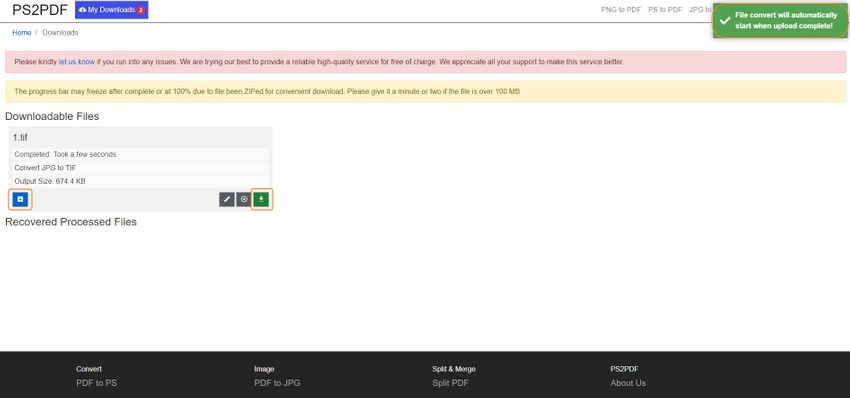 PS2PDF is another online free image converter that lets you convert image format to pdf files. It allows you to take input from your computer and support cloud from Google Drive and Dropbox. If previously you converted some files, these will be shown in the download button.