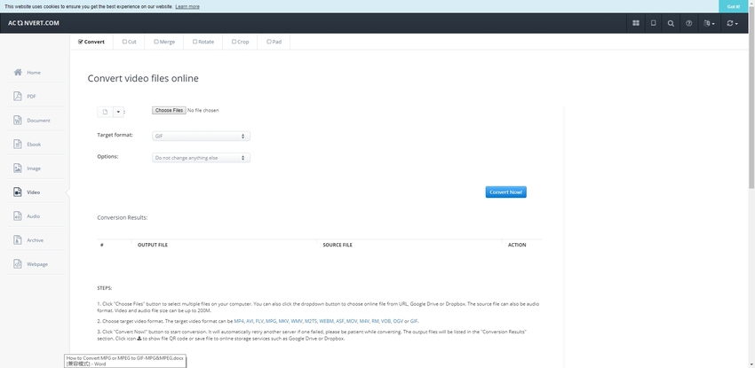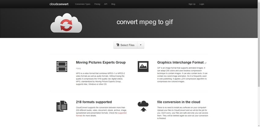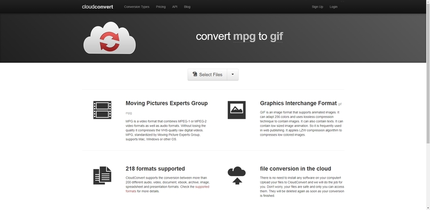 Cloud Convert website is also a very nice website which allows users to convert MPG to GIF format without making any effort. This website also works online in the browser. It is compatible with Mozilla Firefox, Chrome, Internet Explorer and many other browsers. There is no need to do any software installation on the system for converting files while using this website. It supports several different types of data conversion, including images and videos.