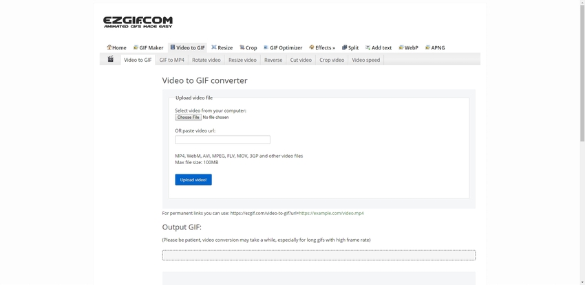 EZgif website is mainly developed to do operations related to the conversion of GIF files, creating GIF files and many other types of actions associated with GIF files. Using this website, you can not only convert MPG to GIF but also rotate, reverse, resize, adjust video speed, and crop video. These services are online, and this is necessary to install any program on the computer to use the services of the website.
