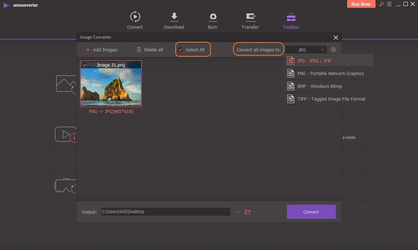 Download Wondershare UniConverter to try its image converter (Convert PNG to JPG) feature now. It supports Mac and Windows system.