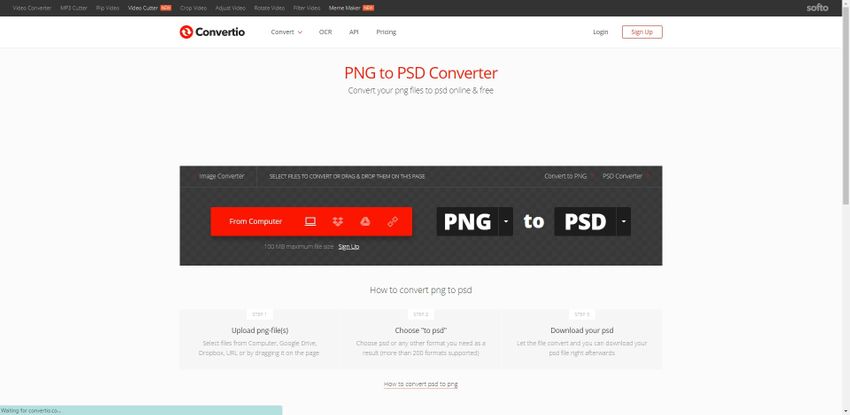 Convertio is another online web app that enables you to convert PNG to PSD format to edit photos using Photoshop. This website is easy to use and offers some paid plans as well for its users. Using the paid plans of website you can convert any type of file without any limitation of file size or number of files per day. The website offers mainly all types of files converters.