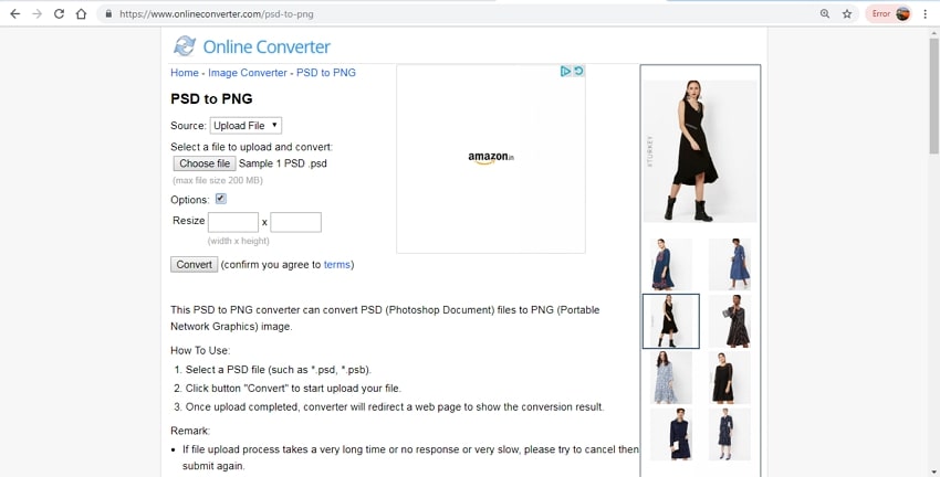 Using Online Converter, local and online PSD files can be added to the program for conversion to decent quality PNG files. Multiple files within the maximum size of 200MB can be added and processed at a time. Option to resize the output file is also there. The converted files can be downloaded from the program interface.