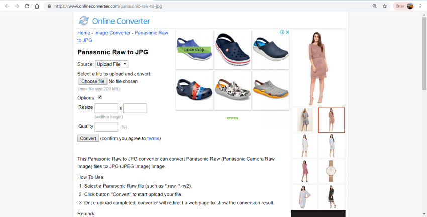 Online tools can also be considered for basic RW2 to JPG image conversion. These programs do not require any software installation and are free to use. Popular online RW2 to JPG converter are listed below.