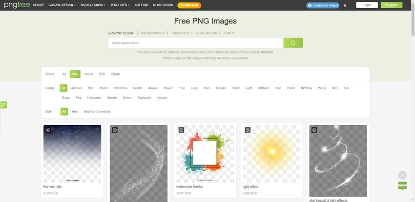 This popularly used sites for downloading images in PNG format. The site has a huge collection of images available in Vector, PSD, Clipart and other scenes. You can even search for the images in different categories for use like animals, hearts, logo, cars, cloud, and others. PNG pictures for design flashlight in transparent images are also available for free download. The process of image downloading is simple where you just need to choose the image and start the file download after registering with the site.