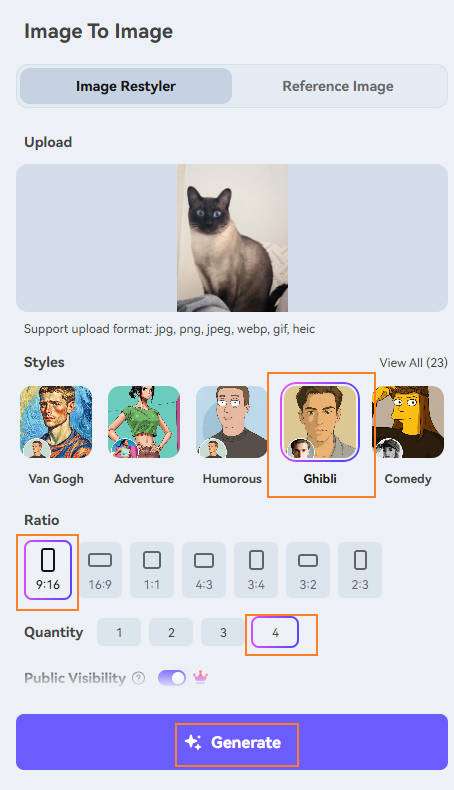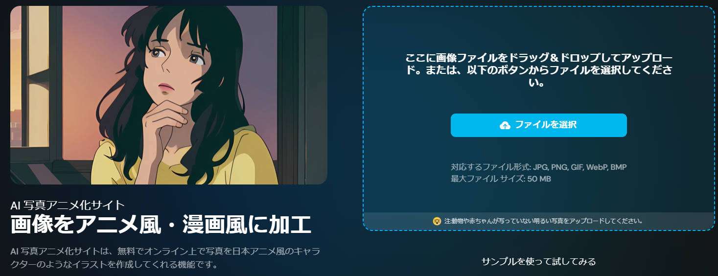ジブリ風に限らず、さまざまなアニメスタイルを試したい方にぴったりな画像生成AIサイトです。