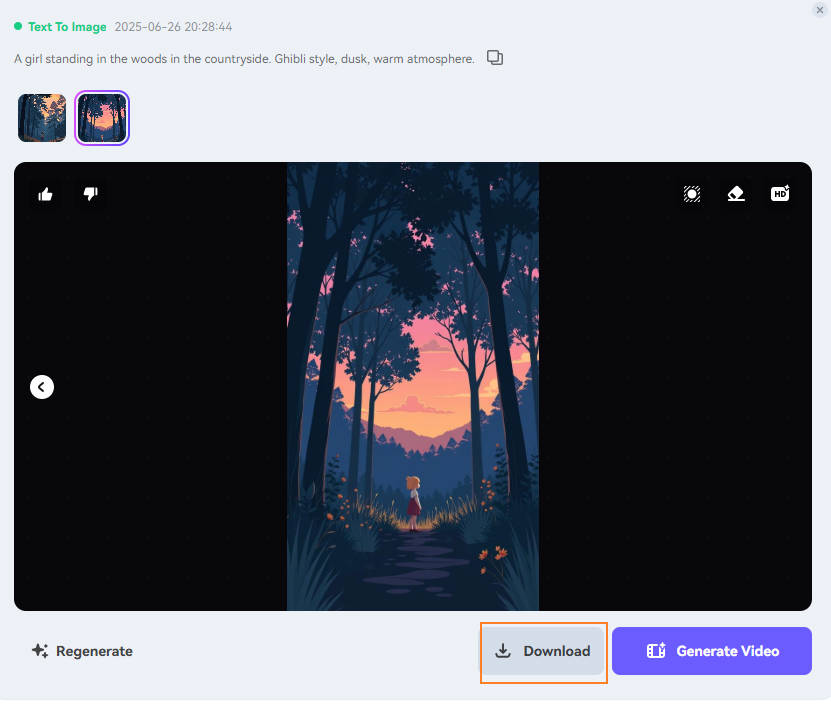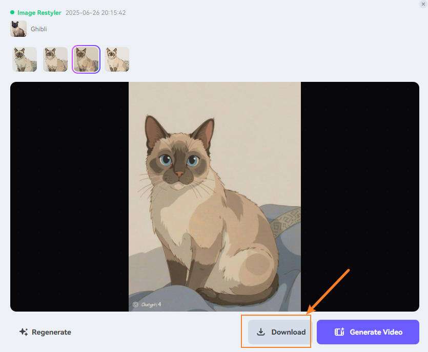ステップ3:生成したジブリ風画像をダウンロードしましょう。