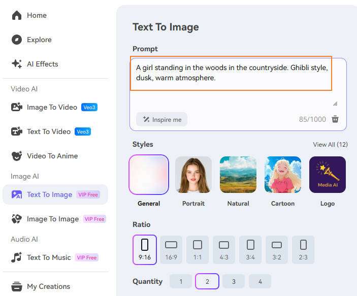ここでは、実際にMedia.ioを使ってジブリ風画像を生成する方法をわかりやすく紹介します。