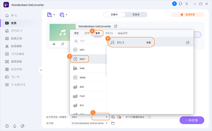 WAVからMP3への変換も同じで、ステップ2でWAVファイルを追加し、出力形式としてMP3を選択するだけです。 したがって、MP3ファイルをWAVにすばやく簡単に変換する方法の検索は、Wondershare UniConverterで終わります。