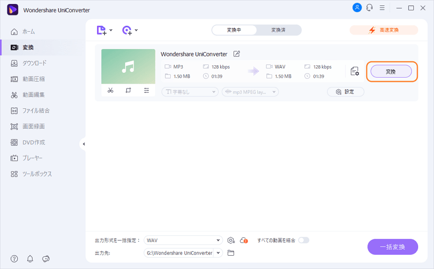 変換ボタンをクリックして、MP3をWAVに変換開始