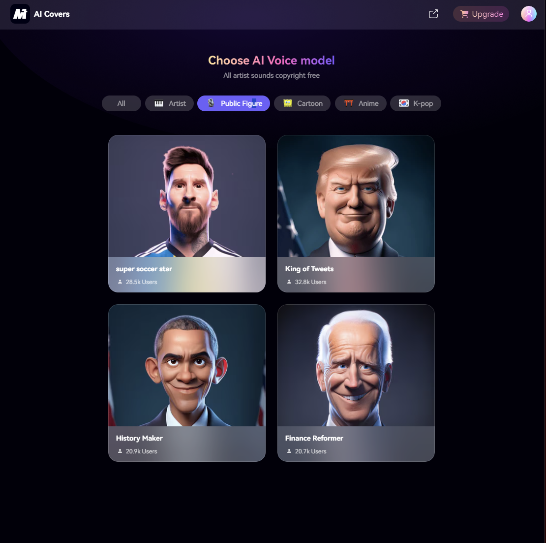 - 노래 생성기를 통해 유명 아티스트의 커버를 할 수 있습니다.